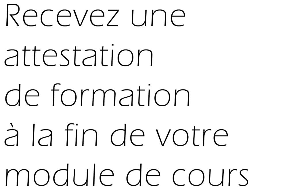 Chaque participant reçoit un support de cours par module choisi ainsi que des exercices pour s’exercer entre les cours.